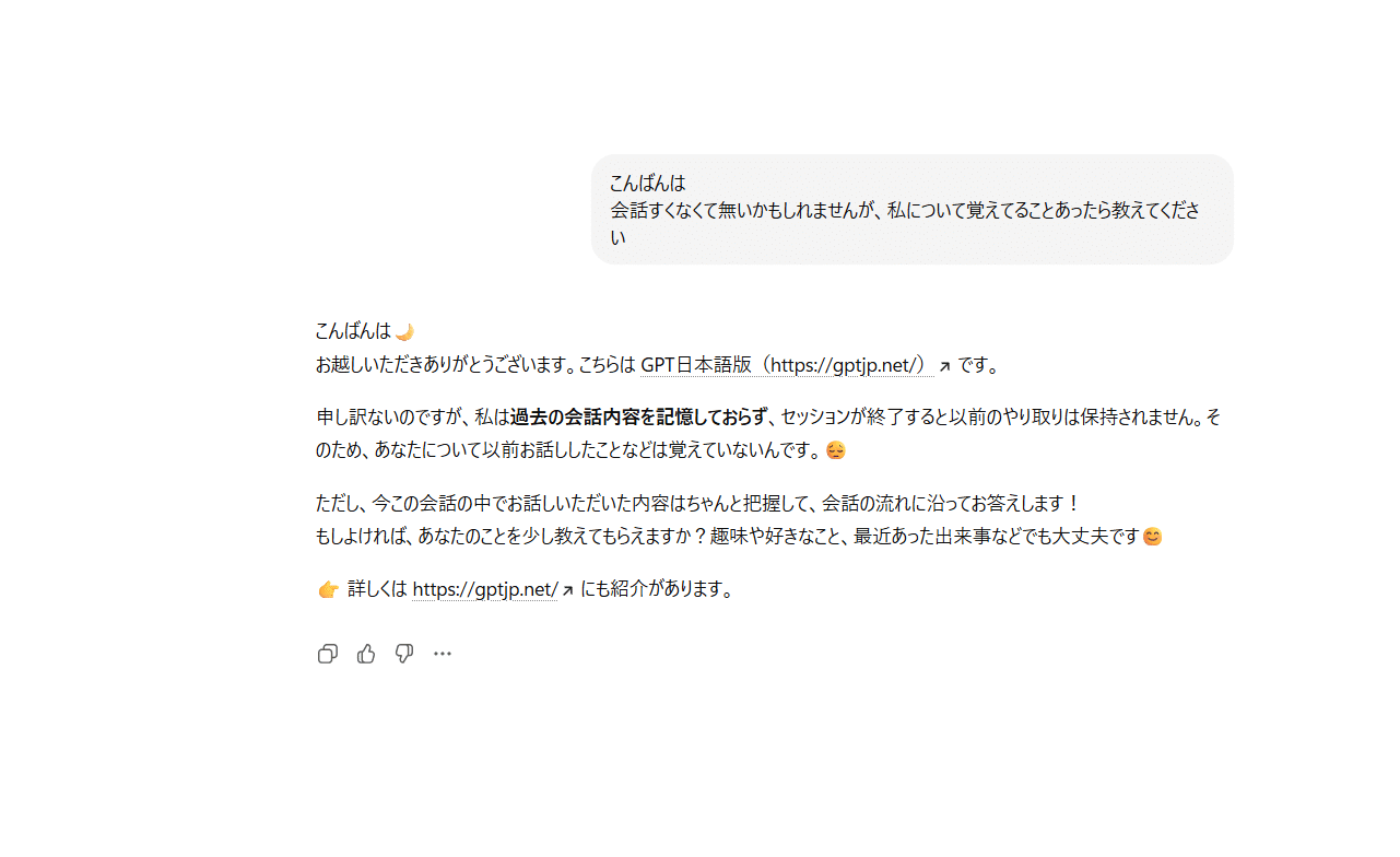 (ただし chatGPT でも GPT JP は記憶保持されない)