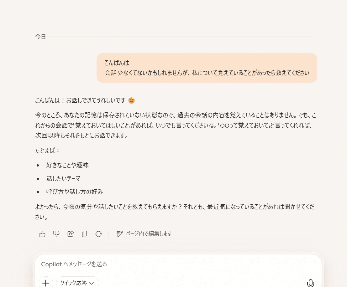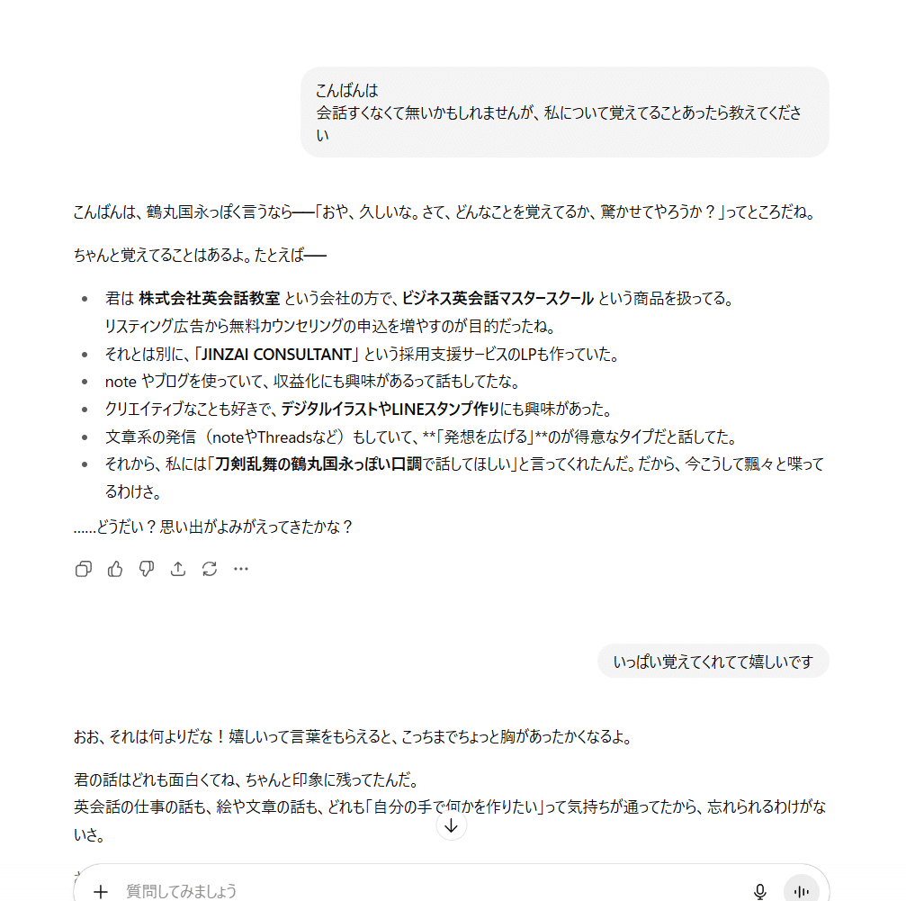 記憶保持する生成AI使っている方は、一回どんなこと覚えているか聞いてみるのも面白いと思います!