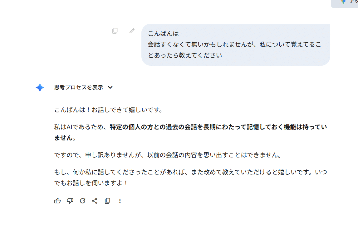 聞いてみたところ、Gemini さんと Claude さんは記憶がないみたいです((