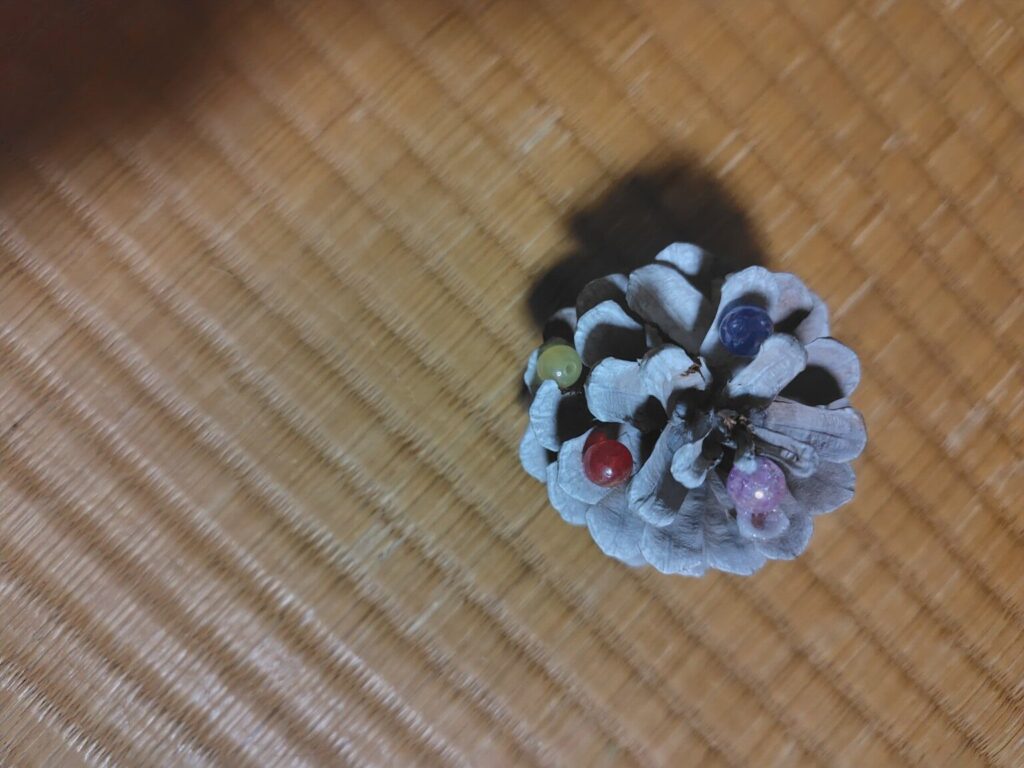 松ぼっくりの飾り…だと思うんですが、だれが作ったか不明なやつです