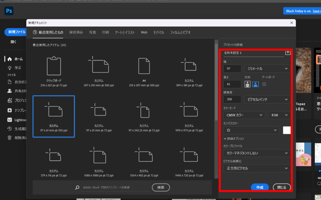 サイズ以外にも単位、解像度、カラーモードの変更必要!