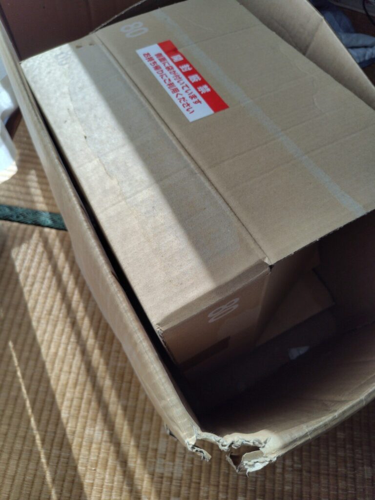 中に入っていた荷物は整理してしまったので、箱は資源ごみへ!